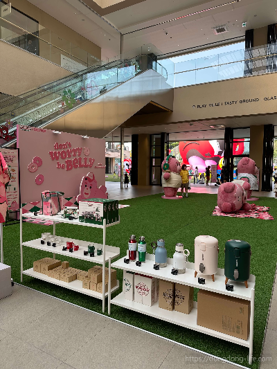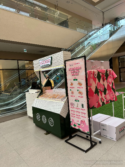 지금 타임빌라스 롯데 아울렛에 가시면 크리스피 도넛의 귀여운 핑크곰 캐릭터인 벨리곰을 만날 수 있어요.