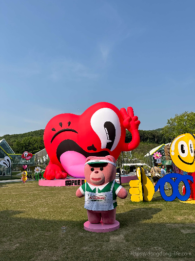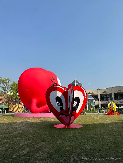 타임빌라스 가운데 잔디 광장에 큰 하트 조형물이 있어요.