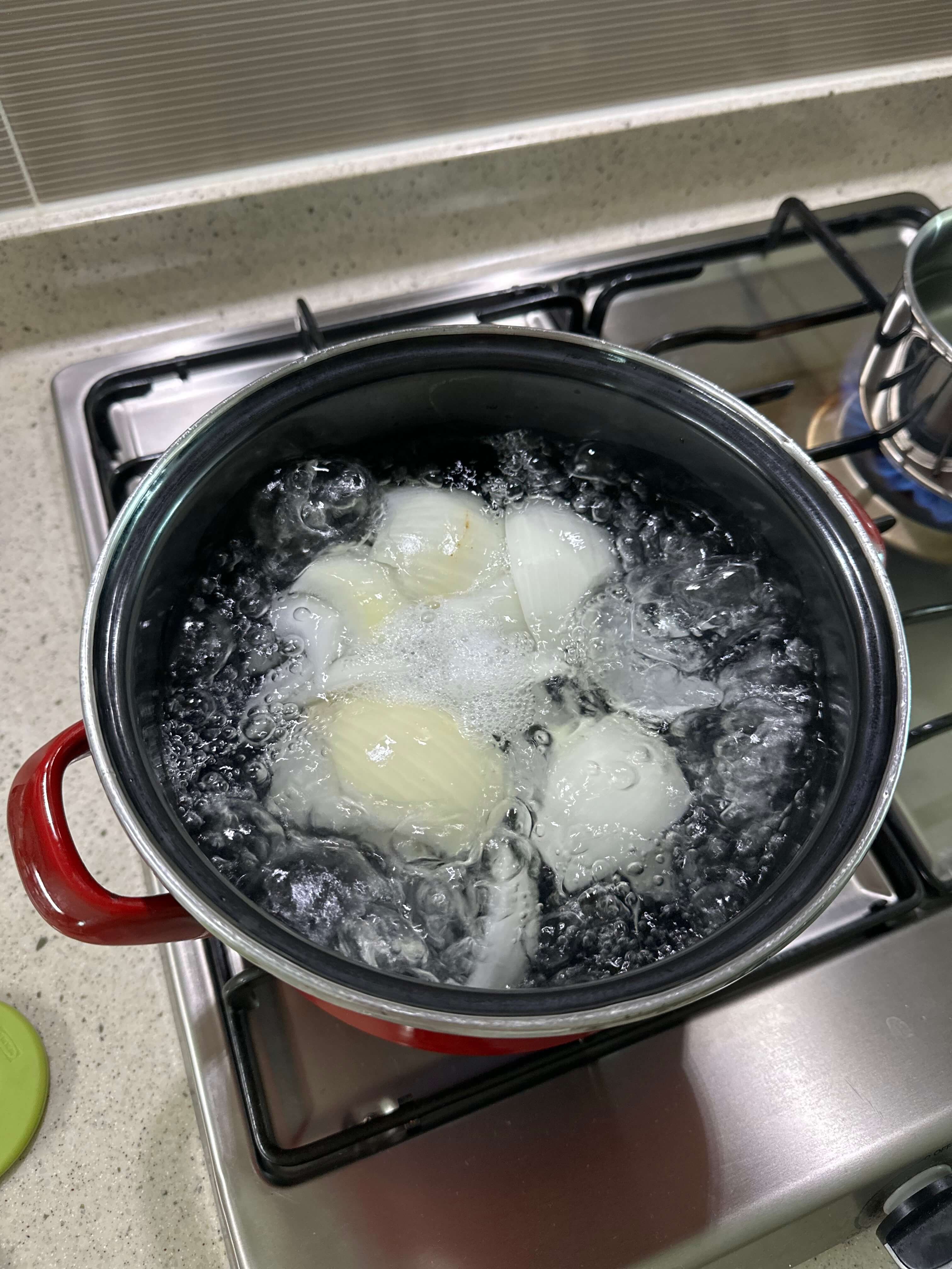 4. 물이 끓으면 양파부터 넣고 양파가 투명해질 때까지 삶는다.