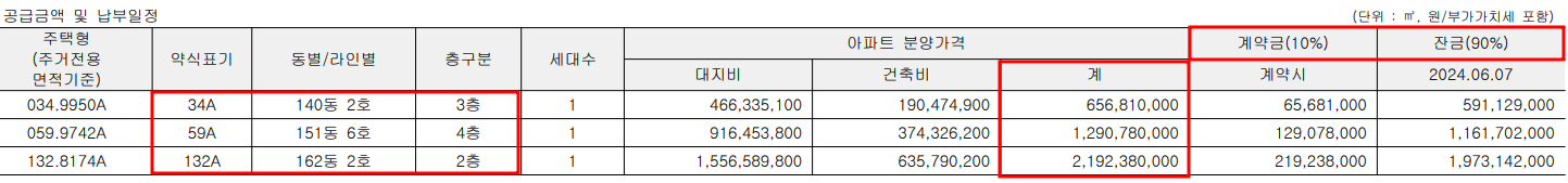132제곱의 경우 시세차익 20억 이상 로또 분양임은 확실하지만 무턱대고 청약하기에는 분양가도 만만치 않고 잔금 일정이 매우 빡빡합니다.