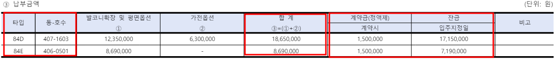 ✅ 분양가 및 총 공급금액