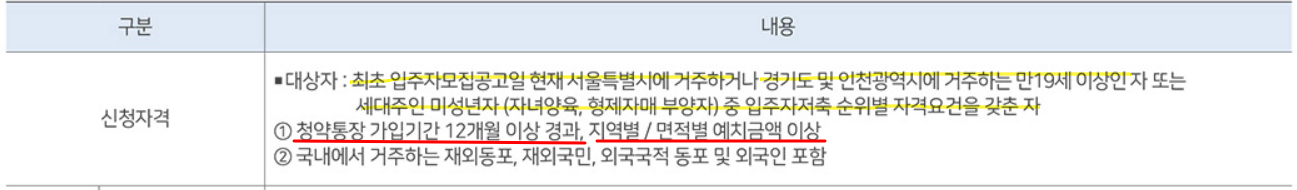청약통장 가입기간이 12개월 이상 경과하고 지역별 및 면적별 예치금액이 맞는지를 꼭 확인하셔야 합니다.