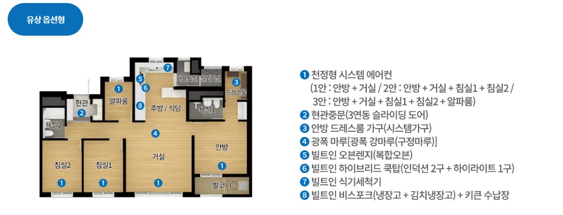 아래는 유상옵션 적용한 평면도 입니다.