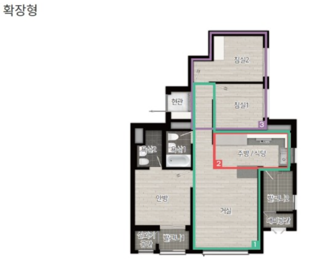 84타입 역시 1세대 공급 예정이며 발코니 확장형입니다.