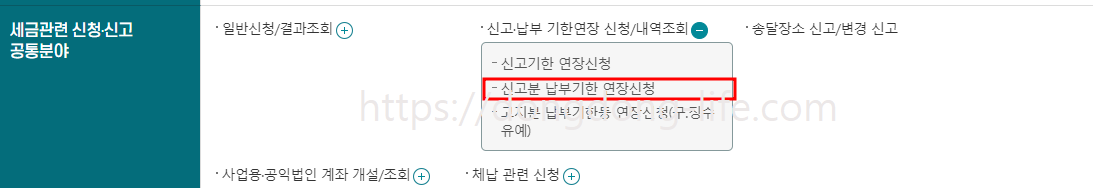 또한 직권연장 대상에 충족하지 못한 납세자도 사정으로 인해 신고 및 납부에 어려움이 있는 경우라면 "연장신청"을 통해 납부기한을 연장할 수 있습니다. 연장 방법은 다음과 같습니다.