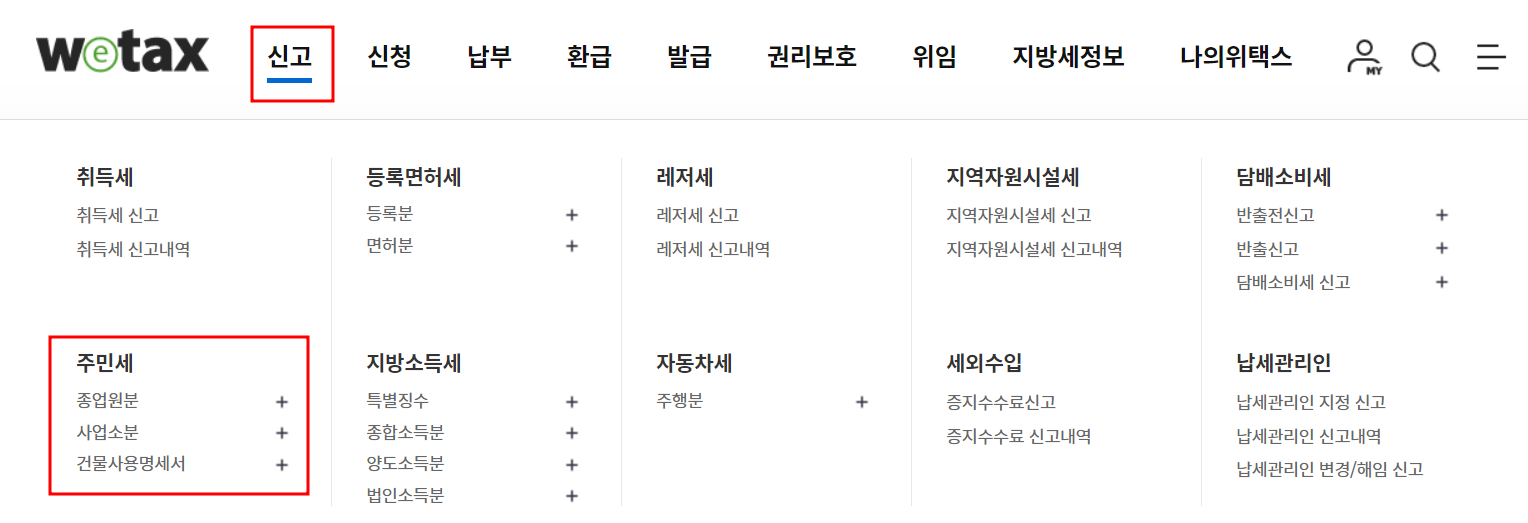 위택스에서 주민세 신고 납부하기