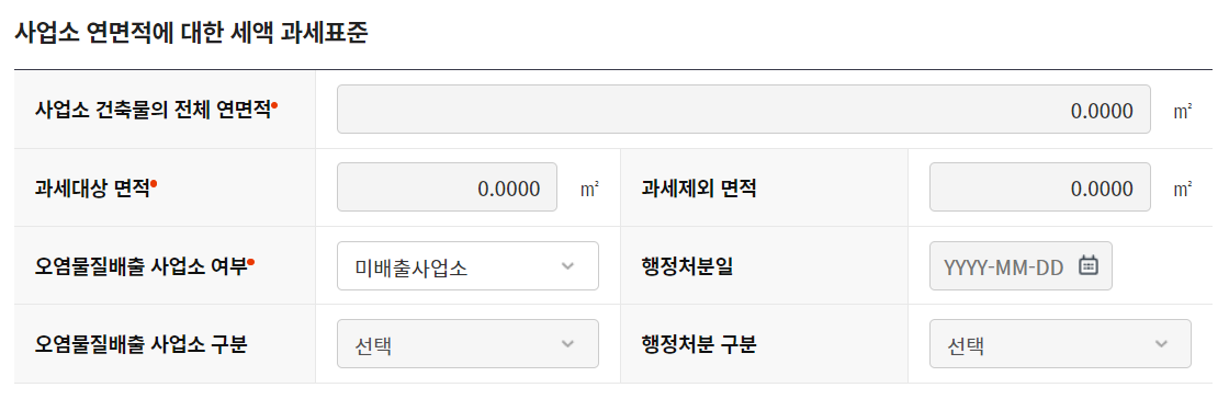 ✔ 2023년 사업소의 총수입금액이 8,000만 원 이상일 때, 사업소의 연면적에 따라 과세하여 부과합니다. 기본 세율분과 연면적에 대한 세율분을 합산하여 세액을 산출하며, 아래 계산기를 통해 미리 주민세 금액을 예측해 볼 수 있습니다.