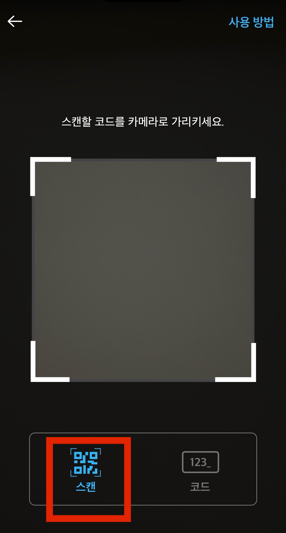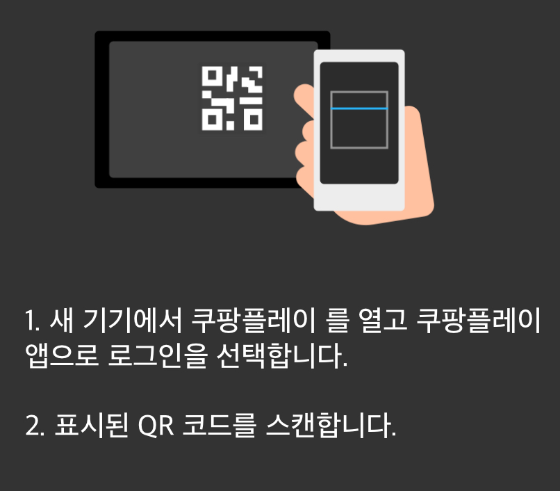 5. 스마트폰의 쿠팡플레이 앱에서 QR코드 스캔 또는 코드 입력을 선택하여 편한 방법으로 인증합니다.